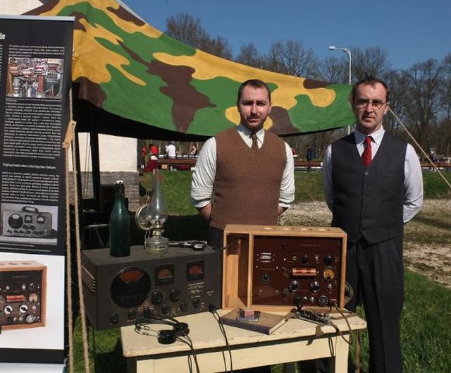 Obr. 17 - Zleva doprava: Pan Petr Tolar v roli Jiřího Potůčka a Václav Busta, OK1MWA